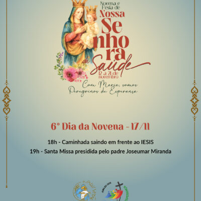 Com alegria e espírito de fé, o Santuário Diocesano Nossa Senhora da Saúde, em Ibiraçu, anuncia a programação oficial da Novena em honra à Padroeira, que acontece de 12 a 21 de novembro, reunindo devotos de toda a região em momentos de oração, confraternização e espiritualidade.